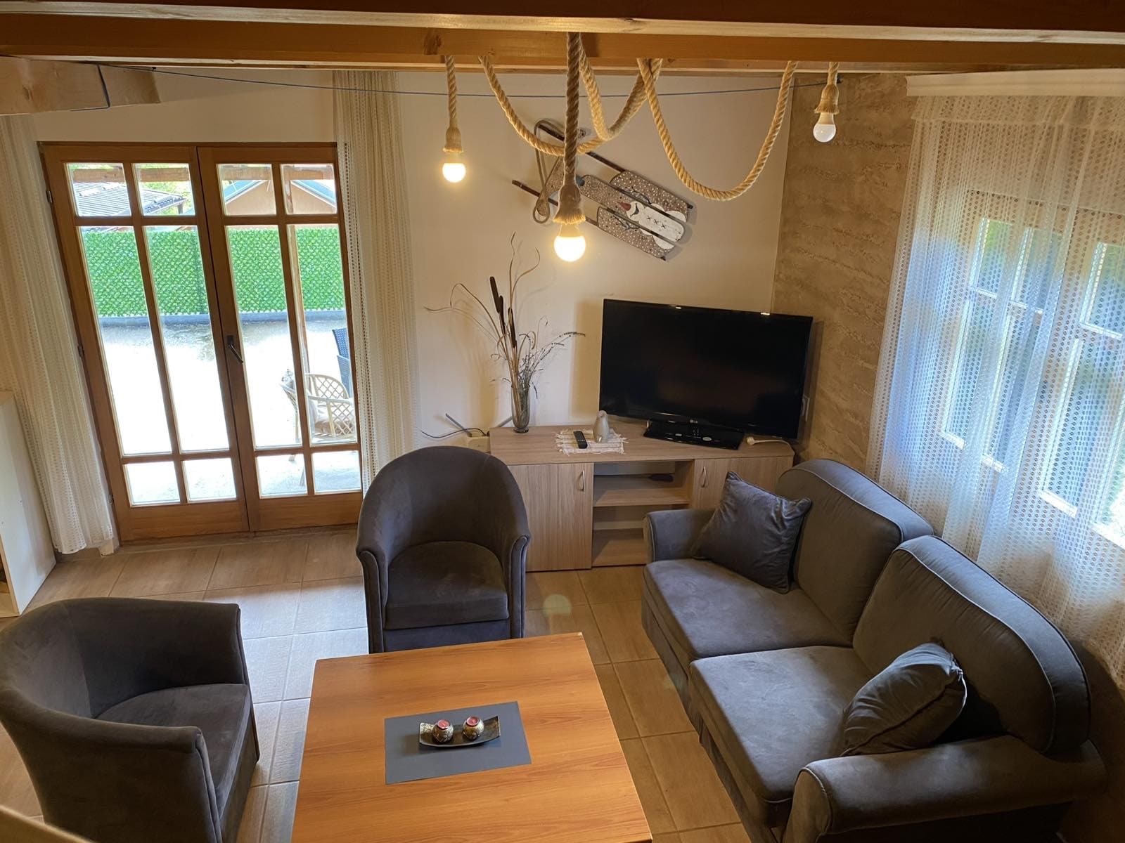 Apartman sa jednom spavacom sobom, maximum 5 osobe, u dnevnoj sobi krevet na razvlacenje 150/200, kompletno opremljena kuhinja.
